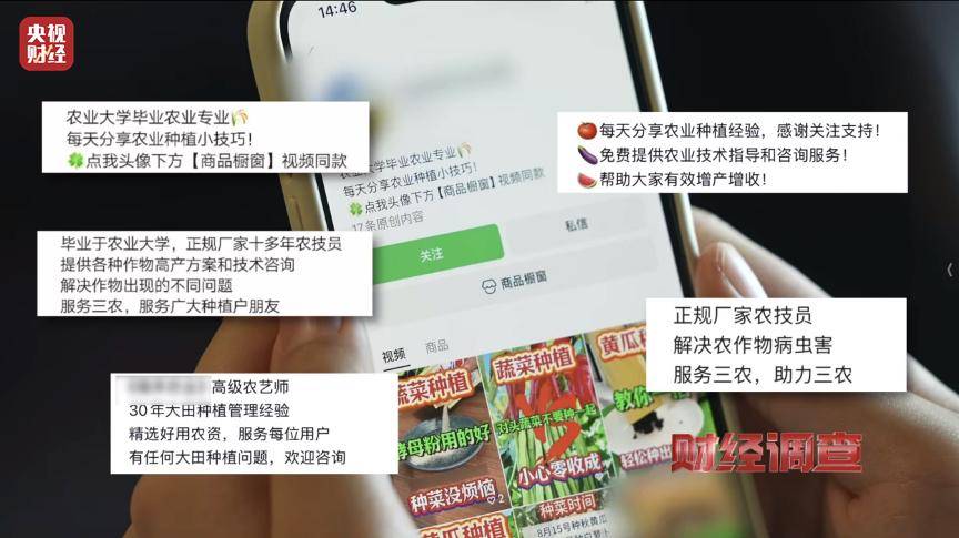 他们城市用大段篇幅衬着“不消就亏了”“农资店毫不会告诉你”之类的话术,最初“专家达人”会间接之前分享的“小妙招”,用一个更诚担任的语态,转而保举本人的农资产物进行发卖。